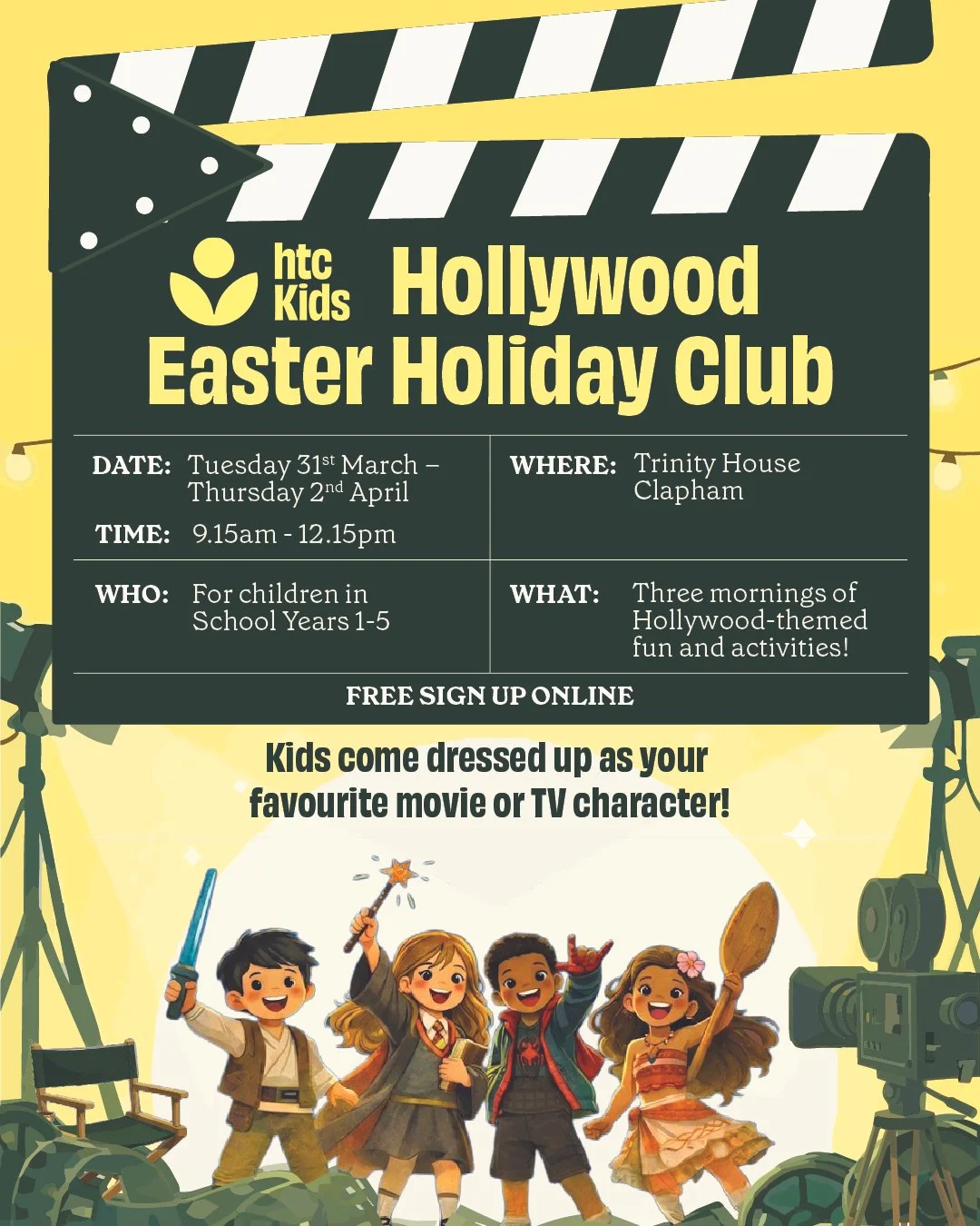 Join us at HTC's Hollywood-themed Holiday Club at Trinity House Clapham, open to all children in School Years 1-5. Come dressed in your best film or TV costumes each day!